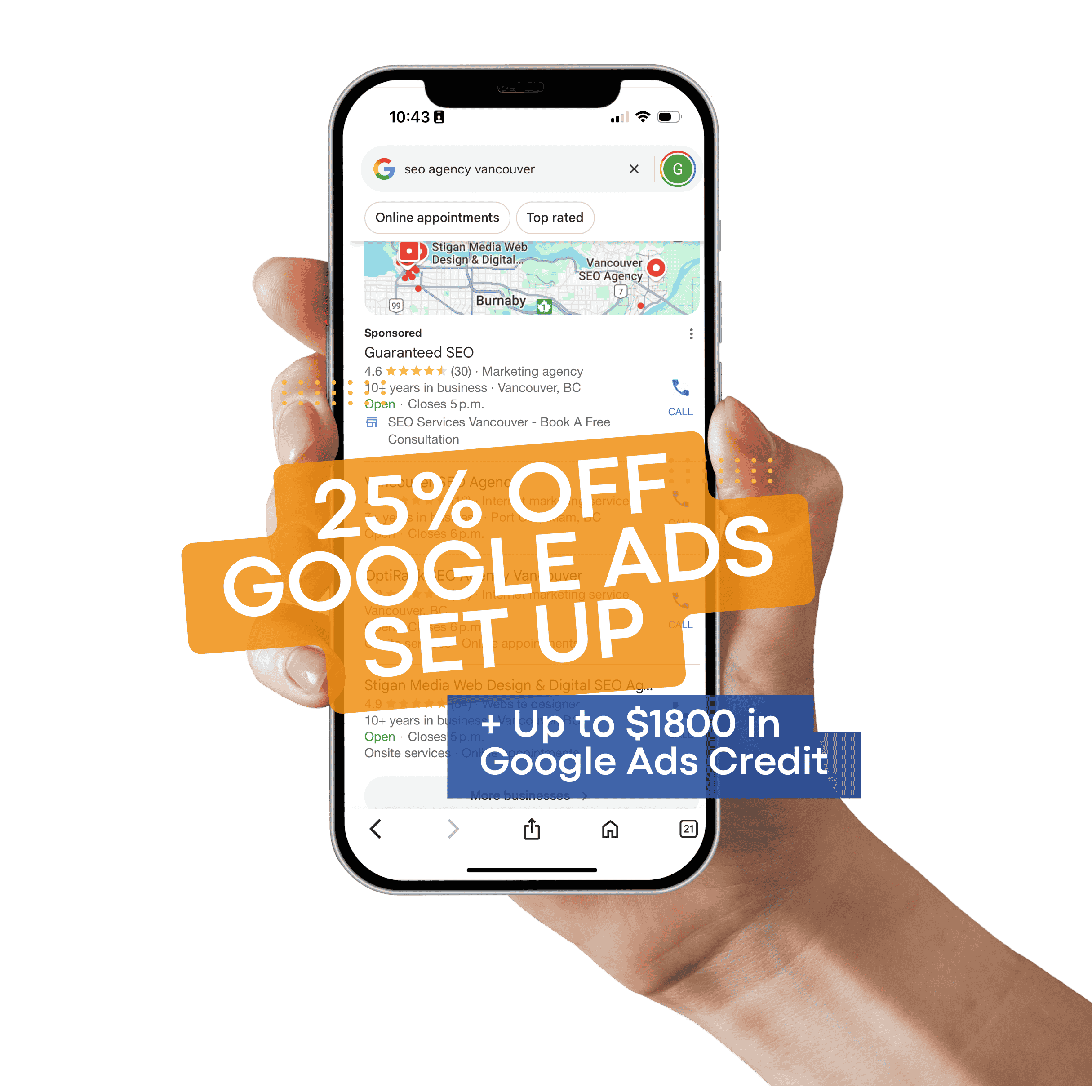 Get more from every dollar you spend. Your setup discount and Google ad credit combine to give your business the strongest start possible.